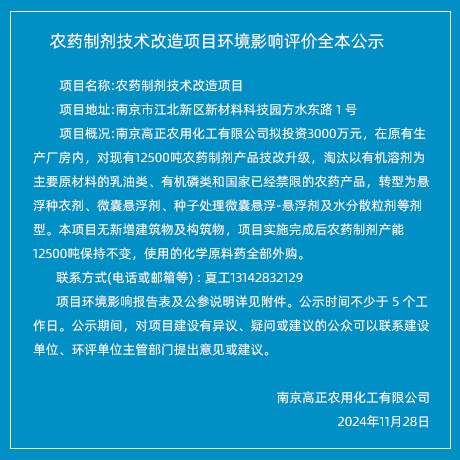 定將現(xiàn)有項目整體搬遷至江蘇省如東沿海經(jīng)濟開發(fā)區(qū)。搬遷完成后,將形成年產(chǎn)1000噸戊唑醇、200噸吡丙醚、500噸噻蟲啉、200噸環(huán)丙唑醇原藥的生產(chǎn)規(guī)模... |